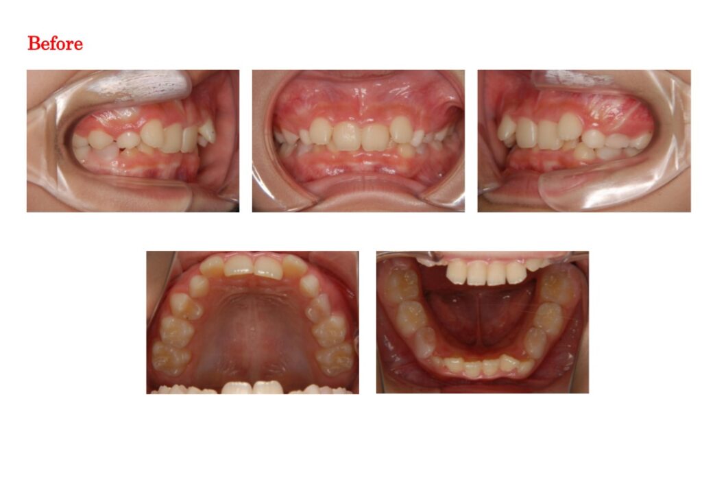 ●治療方法:表側マルチブラケット装置と上顎固定式拡大装置を用いて治療しました。MFT(筋機能訓練)を同時に行っています。