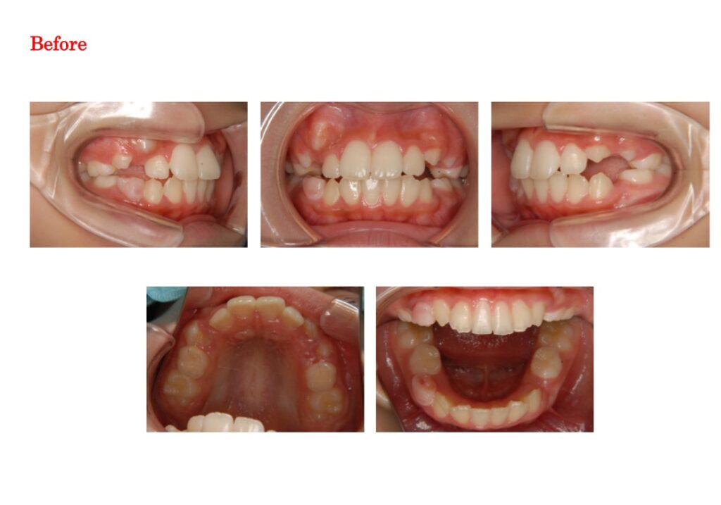 ●主訴:犬歯が外側から生えてきた。前歯の真ん中がずれている。