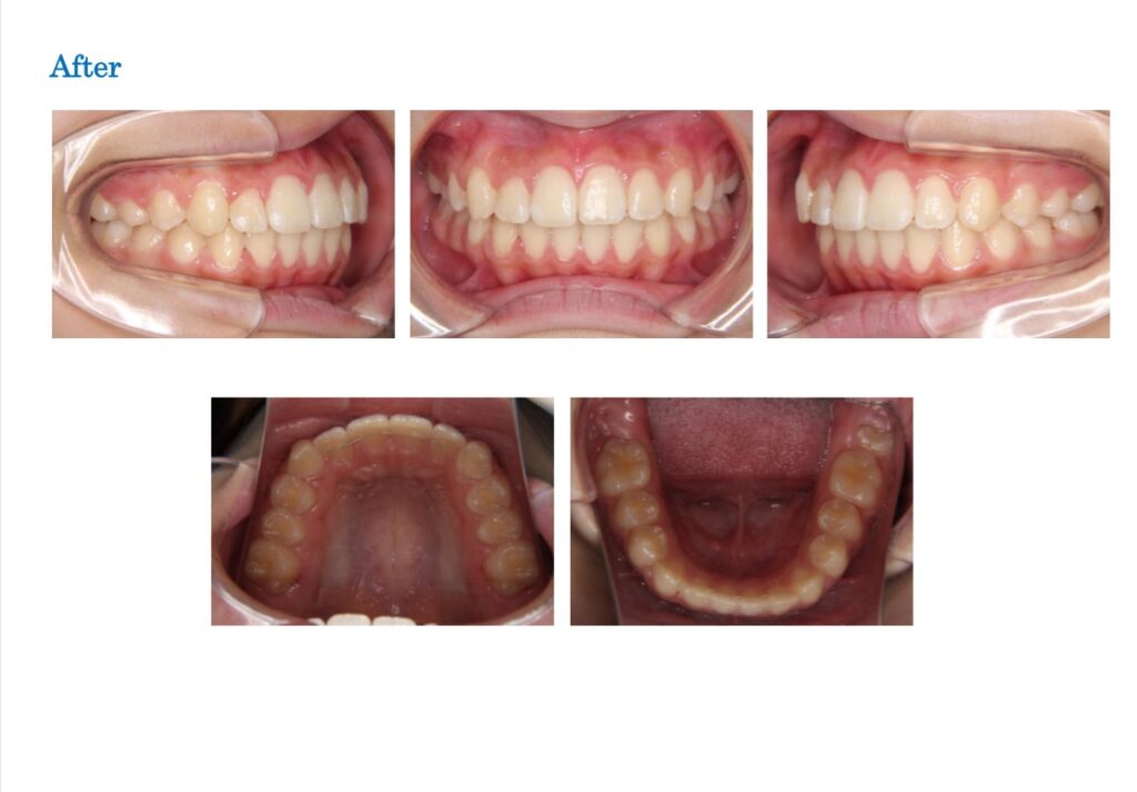 ●治療方法:表側マルチブラケット装置と上下顎固定式拡大装置を用いて治療しました。MFT(筋機能訓練)を同時に行っています。